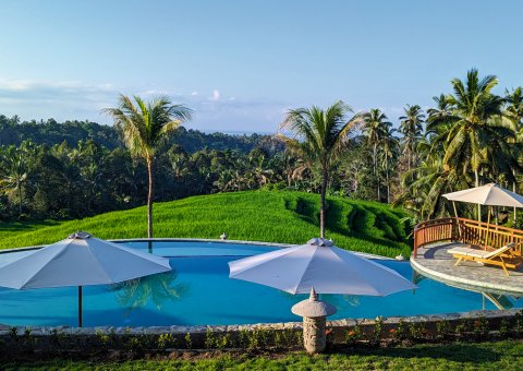 Sie wohnen in zwei nachhaltig ausgerichteten Resorts in unterschiedlicher Lage, die beide einen tiefen Bezug zur Natur haben. Das Puri Dajuma Beach Resort an der Westküste liegt direkt am schwarzen Sandstrand, umgeben von tropischen Gärten mit Kokospalmen und Frangipani-Bäumen. Die 35 Zimmer sind in balinesischer Architektur gestaltet, mit hochwertigen Holzmöbeln und nur wenige Schritte vom Meer entfernt. Das Dajuma Terrace Eco Lodge & Spa im Landesinneren ist eine kleine Boutique Lodge mit 14 Zimmern, eingebettet in die schönsten Reisterrassen Balis. Von hier aus reicht Ihr Blick über terrassenförmige Felder bis zu den Vulkangipfeln – ein Ort, an dem Sie die Verbindung zur Erde spüren.