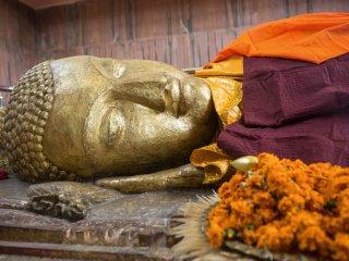 In Kushinagar ist Buddha gestorben, hat sich aus dem Kreislauf von Sterben und Wiedergeburt befreit und ging ins Nirwana ein. Gläubige Buddhisten suchen diesen Platz auf, um sich an die Vergänglichkeit des Seins zu erinnern.