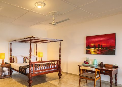 Sie wohnen in einem der 19 harmonisch und liebevoll eingerichteten Gästezimmer, die sich im ehemaligen Kolonialhaus oder im Neubau befinden. Alle der circa 32 qm großen Zimmer mit Balkon oder Terrasse bieten einen herrlichen Meerblick. Darüber hinaus verfügen die Zimmer über Dusche/WC, Föhn, Ventilator, Klimaanlage, Moskitonetz, Safe, Telefon sowie kostenfreies WLAN.