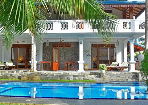 Die Villa Safira liegt ruhig zwischen Zimtplantagen und Palmen, abseits touristischer Zentren – ein bewusst gewählter Rückzugsort für Ihre Kur. Das kleine Haus mit nur zehn Zimmern schafft eine intime Atmosphäre. Jedes Zimmer verfügt über eine großzügige private Terrasse oder einen Balkon mit Blick in den tropischen Garten oder über das Palmenmeer. Der Pool im Garten und das private Gartengrundstück am Meer bieten Raum für Stille zwischen den Behandlungen.